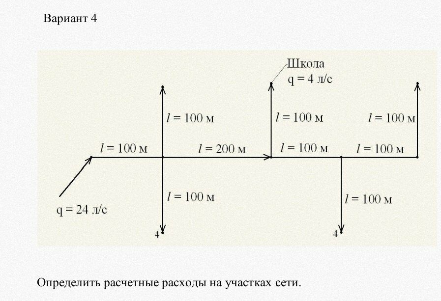 Для студентов по предмету Механика жидкости и газа (МЖГ или Гидравлика)Определить расчетные расходы на участках сетиОпределить расчетные расходы на участках сети