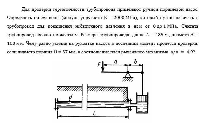 Задача: Для проверки герметичности трубопровода применяют ручной поршневой насос