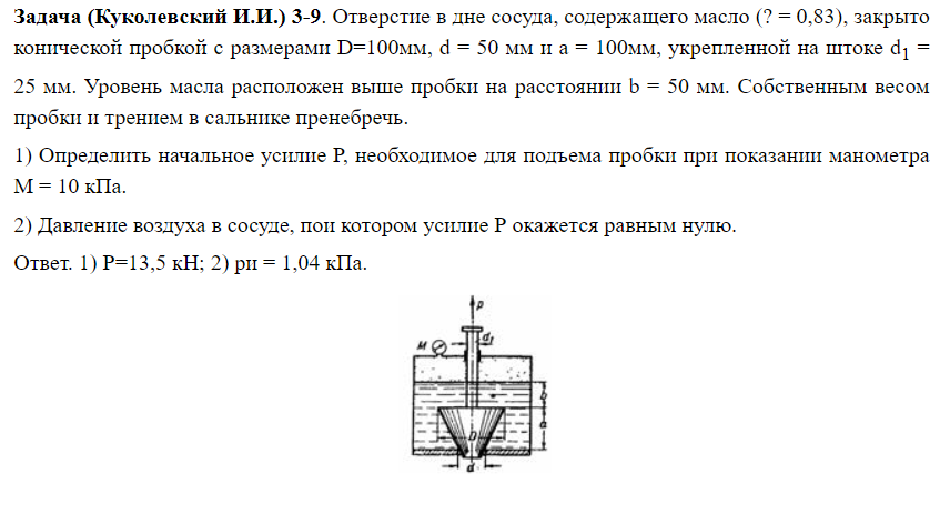 Для студентов по предмету Механика жидкости и газа (МЖГ или Гидравлика)Задача 3-9Задача 3-9