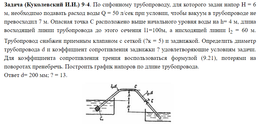 Для студентов по предмету Механика жидкости и газа (МЖГ или Гидравлика)Задача 9-4Задача 9-4