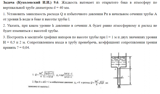 Для студентов по предмету Механика жидкости и газа (МЖГ или Гидравлика)Задача 9-6Задача 9-6