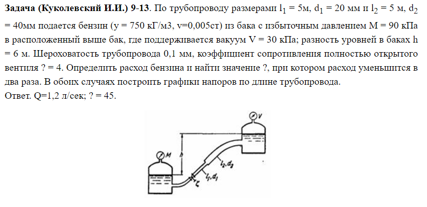 Для студентов по предмету Механика жидкости и газа (МЖГ или Гидравлика)Задача 9-13Задача 9-13