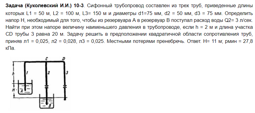Для студентов по предмету Механика жидкости и газа (МЖГ или Гидравлика)Задача 10-3Задача 10-3