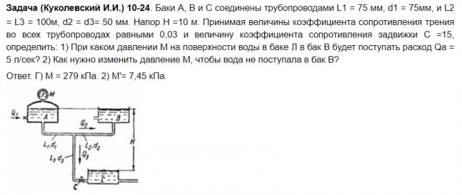 Для студентов по предмету Механика жидкости и газа (МЖГ или Гидравлика)Задача 10-24Задача 10-24
