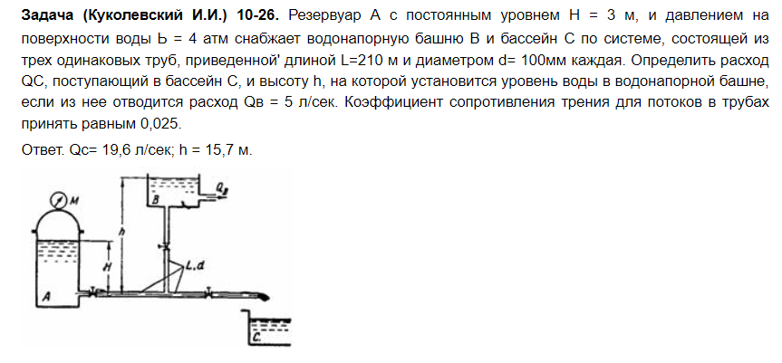 Для студентов по предмету Механика жидкости и газа (МЖГ или Гидравлика)Задача 10-26Задача 10-26
