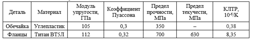 В данной расчетно-графической работе проводится анализ напряжённо-деформированного состояния (НДС) отсека, состоящего из трёх деталей: двух фланцев и обечайки. Конструкция подвергается комбинированным нагрузкам, включая механические воздействия (осевая и поперечная перегрузки) и температурный перепад.
