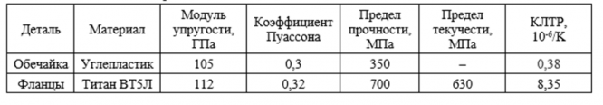 Предоставлена таблица свойств материалов деталей отсеков (рисунок 4).