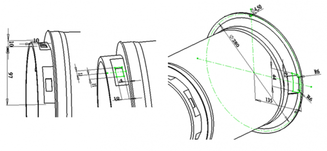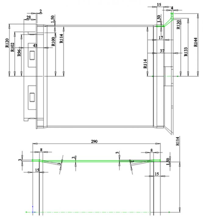 Предоставлены 2 эскиза отсека (рисунки 2-3) и изображение 3D-модели (рисунок 1). Эскизы представлены на рисунках ниже.