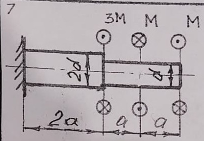 Дано: М = 15 Н·м; а = 0,15 м; G = 0,8·105 МПа; [τкр] = 50 МПа.