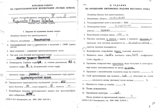 Целью проведения гидротехнических мелиорация при выполнении курсового проекта является увеличение продуктивности лесных земель, повышение санитарно-гигиенических и рекреационных функций лесов, создания благоприятных условий для выращивания качественного посадочного материала в лесных питомниках.