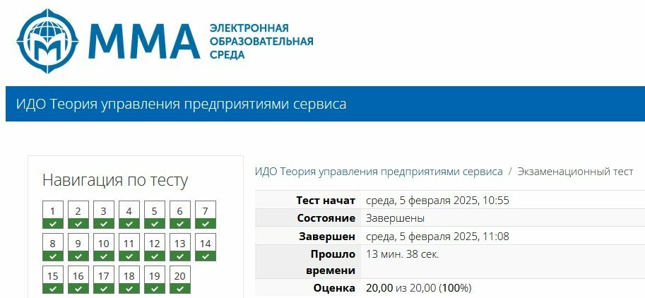 Сборник ответов к экзаменационному тесту Менеджмент (Теория управления предприятиями сервиса) ММА.