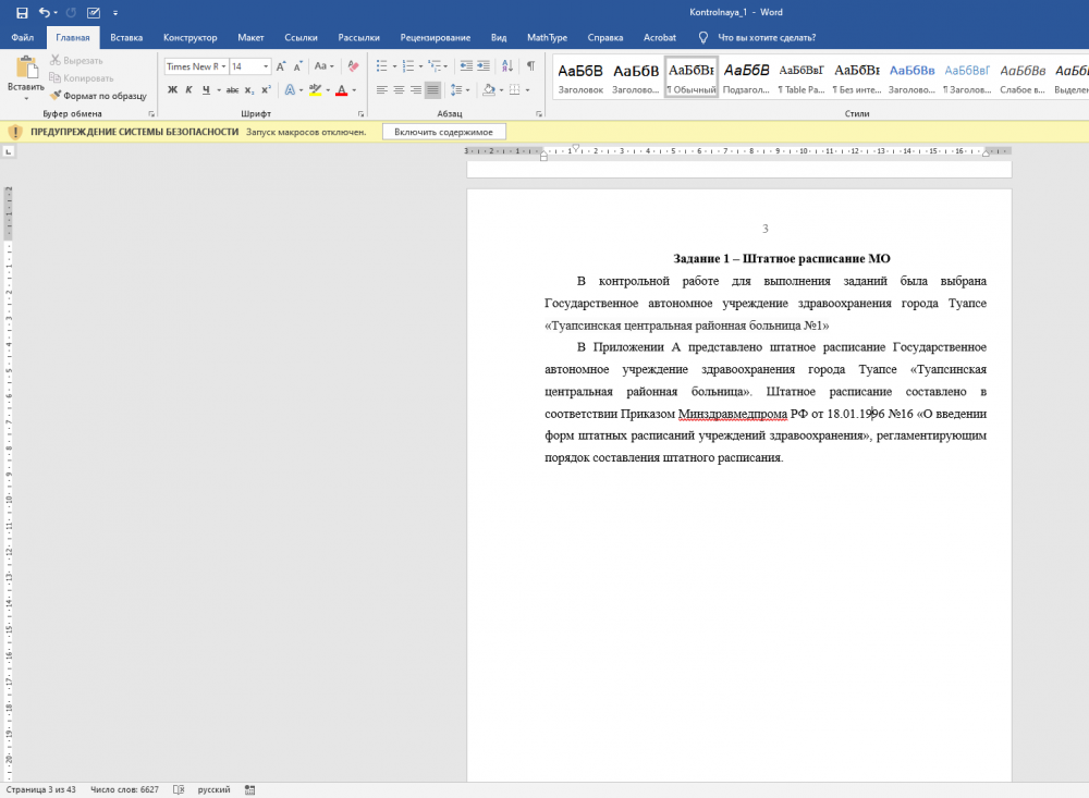 В контрольной работе для выполнения заданий была выбрана Государственное автономное учреждение здравоохранения города Туапсе «Туапсинская центральная районная больница №1»