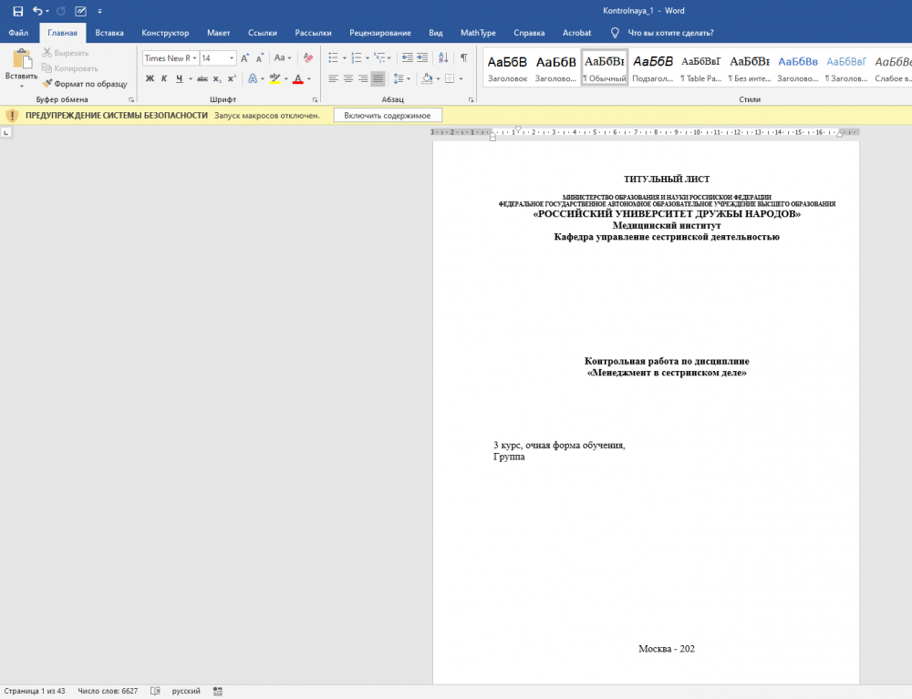 Для студентов РУДН по предмету Менеджмент в сестринском делеКР - Туапсинская центральная районная больница №1КР - Туапсинская центральная районная больница №1