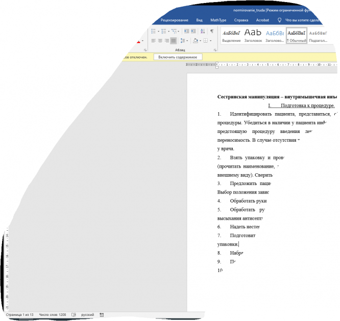 Текст + таблицы заполненные
