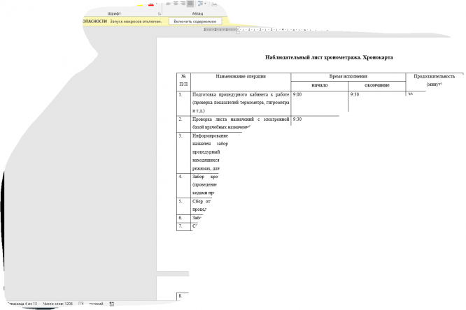 Наблюдательный лист хронометража. Хронокарта