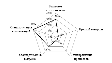 Кейс № 4 Изучите приведенный координационный профиль. Вопросы и задания к кейсу: Дайте характеристику организации, имеющей такой координационный профиль. Приведите примеры таких организаций. |