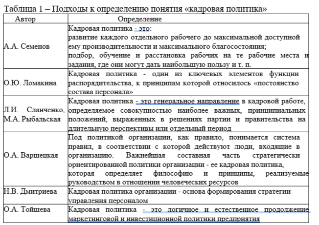 1 ТЕОРЕТИЧЕСКИЕ ОСНОВЫ ИССЛЕДОВАНИЯ КАДРОВОЙ ПОЛИТИКИ ПРЕДПРИЯТИЯ……………………………...…………………9