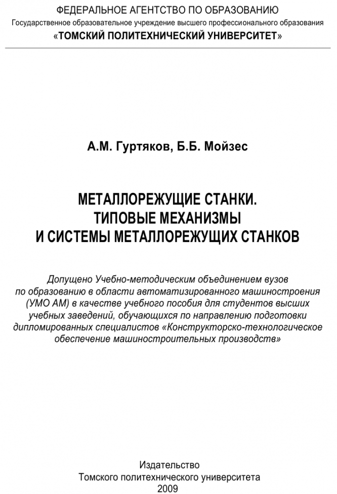 Главная » Учебные материалы » Металлорежущее оборудование » Книги » ТПУ » Несколько классов/семестров » А.М. Гуртяков, Б.Б. Мойзес - Металлорежущие станки. Типовые механизмы и системы металлорежущих станков