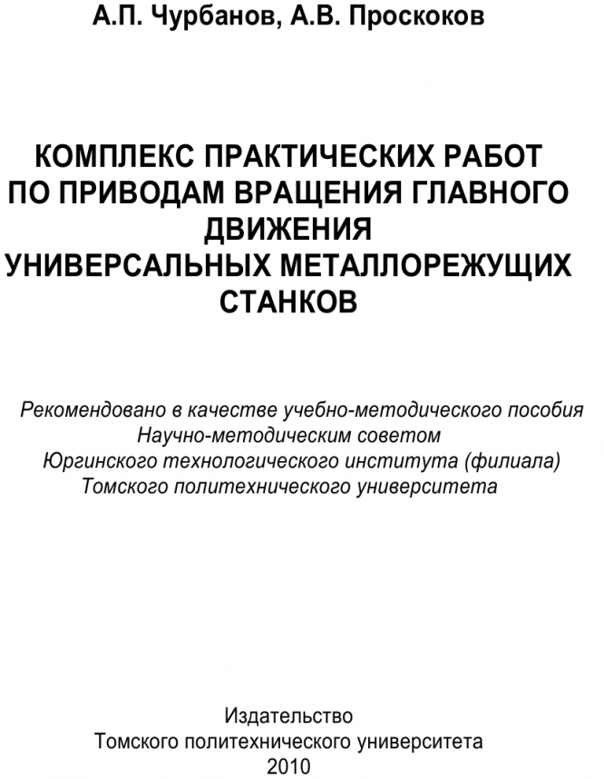 А.П. Чурбанов, А.В. Проскоков - Комплекс практических работ по приводам вращения главного движения универсальных металлорежущих станков