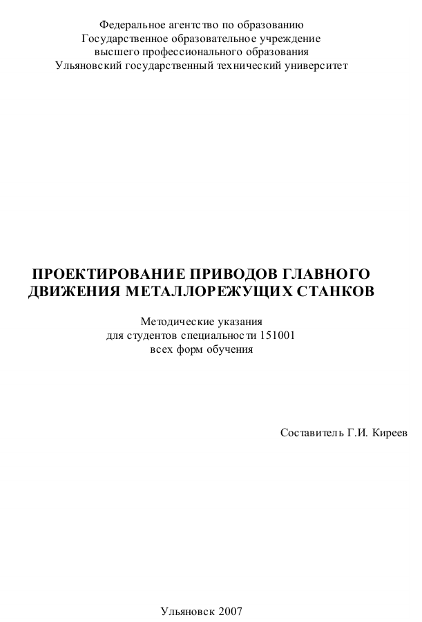 Для студентов УГТУ по предмету Металлорежущее оборудованиеГ.И. Киреев - Проектирование приводов главного движения металлорежущих станковГ.И. Киреев - Проектирование приводов главного движения металлорежущих станков 2022-05-03СтудИзба