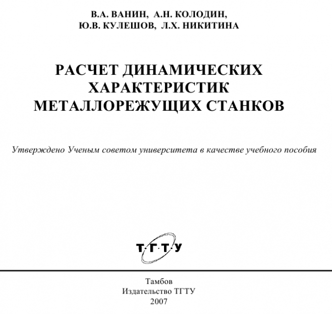 Книга: В.А. Ванин, А.Н. Колодин - Расчет динамических характеристик металлорежущих станков