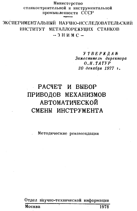 Для студентов МГТУ им. Н.Э.Баумана по предмету Металлорежущее оборудованиеЗ.М. Левина, Корниенко А.А. - Расчет и выбор приводов механизмов автоматической смены инструментаЗ.М. Левина, Корниенко А.А. - Расчет и выбор приводов механизмов автоматической смены инструмента