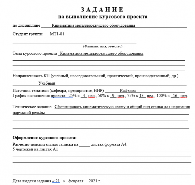 Для студентов МГТУ им. Н.Э.Баумана по предмету Металлорежущее оборудованиеТехническое предложение на станок для нарезания наружной резьбыТехническое предложение на станок для нарезания наружной резьбы