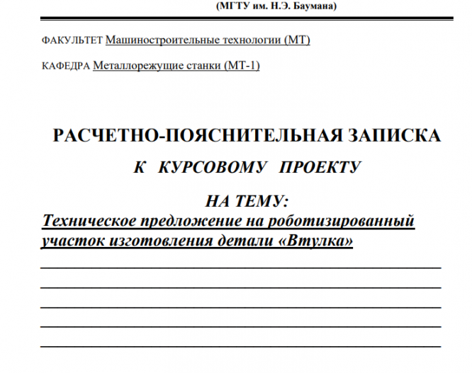Для студентов МГТУ им. Н.Э.Баумана по предмету Металлорежущее оборудованиеТехническое предложение на роботизированный участок изготовления детали «Втулка» Техническое предложение на роботизированный участок изготовления детали «Втулка»