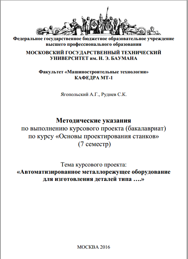 Методические указанияпо выполнению курсового проекта (бакалавриат)по курсу «Основы проектирования станков»(7семестр)Тема курсового проекта: «Автоматизированное металлорежущее оборудование для изготовления деталей типа ....»МОСКВА 2016