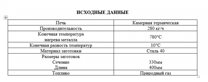 Спроектировать камерную газовую термическую печь со стационарным подом для нагрева стали под термообработку. Материал заготовок: углеродистая сталь. Топливо - природный газ.