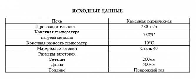 Спроектировать камерную газовую термическую печь со стационарным подом для нагрева стали под термообработку. Материал заготовок: углеродистая сталь. Топливо - природный газ.