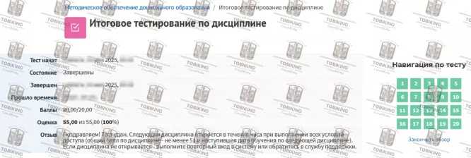 Услуга: Итоговое тестирование Методическое обеспечение дошкольного образования