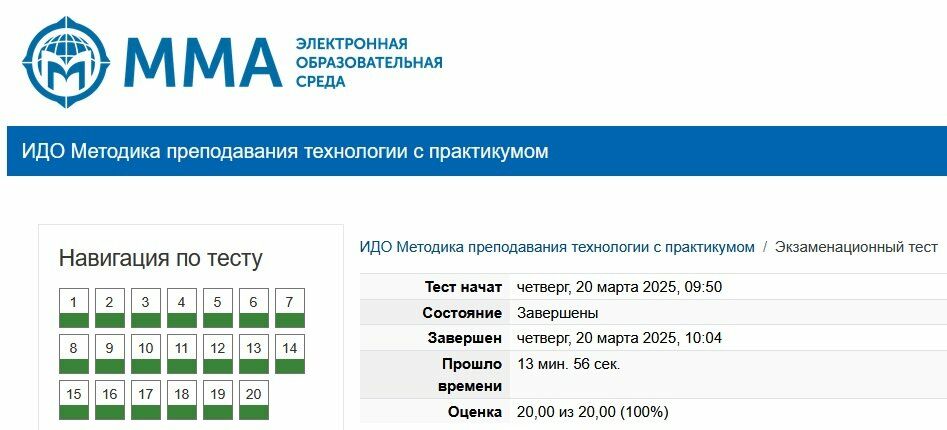 Сборник ответов к экзаменационному тесту Методика преподавания технологии с практикумом ММА.