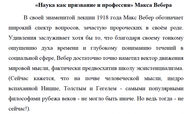 Реферат: Эссе "Наука как призвание и профессия" Макса Вебера