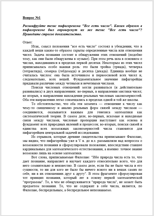 Вопрос №1. Расшифруйте тезис пифагореизма "Все есть число". Каким образом в пифагореизме был опровергнут их же тезис "Все есть число"? Приведите строгое доказательство.