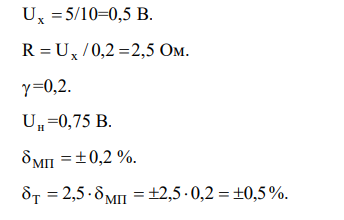 Выполнено однократное измерение напряжения Ux на участке электрической цепи сопротивлением R вольтметром с пределом допускаемой погрешности  с верхним пределом диапазона измерений Uн Известно, что дополнительные погрешности показаний средства измерения из-за влияния магнитного ноля и температуры не превышают соответственно МП и Т  допускаемой предельной погрешности. Требуется оценить погрешность результата однократного измерения.
