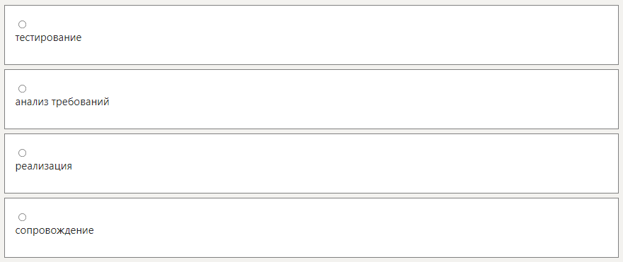 На таком этапе жизненного цикла программного обеспечения, как …, разрабатываются функциональные спецификации