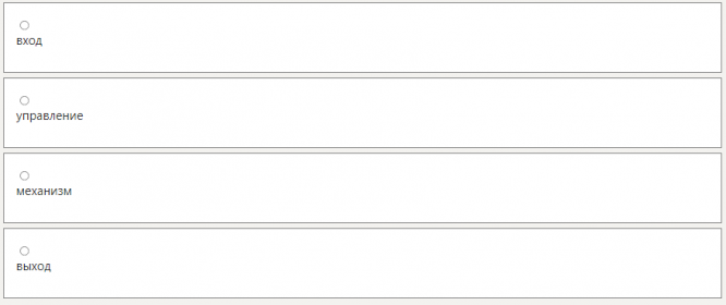 Расположите в правильной последовательности (начиная со входа) компоненты контекстной диаграммы IDEF0: