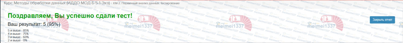 Для студентов ИДДО НИУ «МЭИ» по предмету Методы обработки данныхКурс Методы обработки данных - КМ-2. Первичный анализ данных. Тестирование - 95%Курс Методы обработки данных - КМ-2. Первичный анализ данных. Тестирование - 95%