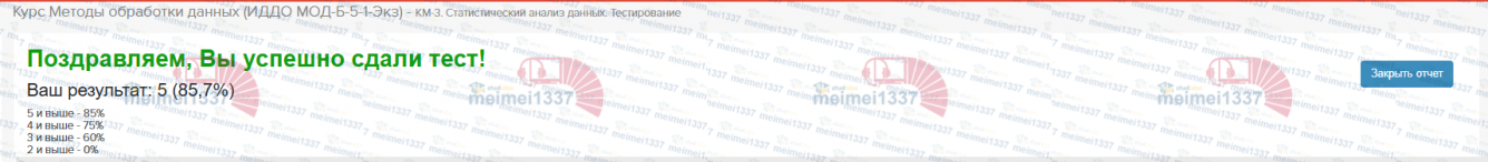 Для студентов ИДДО НИУ «МЭИ» по предмету Методы обработки данныхМетоды обработки данных - КМ-3. Статистический анализ данных. ТестированиеМетоды обработки данных - КМ-3. Статистический анализ данных. Тестирование