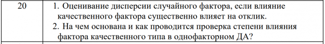 Для студентов ИДДО НИУ «МЭИ» по предмету Методы обработки данныхКМ-6. Метод дисперсионного анализа. Контрольная работа Вариант 20КМ-6. Метод дисперсионного анализа. Контрольная работа Вариант 20