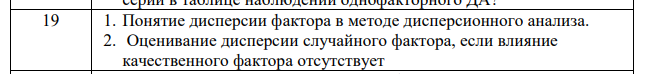Для студентов ИДДО НИУ «МЭИ» по предмету Методы обработки данныхКМ-6. Метод дисперсионного анализа. Контрольная работа Вариант 19КМ-6. Метод дисперсионного анализа. Контрольная работа Вариант 19