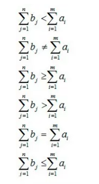 - При решении транспортной задачи получаем модель открытого типа, если выполняется условие (bj - потребности в продукте в пункте j; ai - запасы в пункте i):