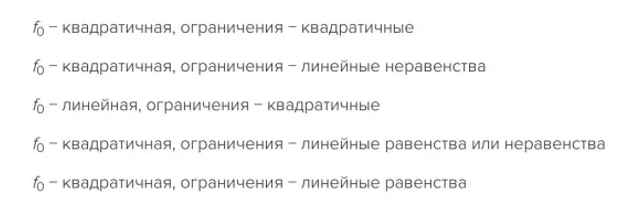 - К задачам квадратичного программирования относятся задачи, в которых:
