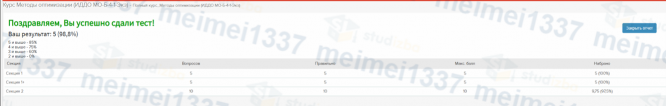 Курс Методы оптимизации - ответы к тестам: