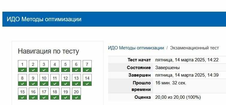 начальном b. конечной c. относительной d. абсолютной Вопрос 20 Какой метод оптимизации основан на использовании производных целевой функции? a. Метод случайного поиска b. Генетические алгоритмы c. Градиентный спуск d. Метод имитации отжига Попытка 2 Вопрос 1 Критический путь на сетевом графике – это: a. путь, проходящий через наибольшее количество событий b. путь, включающий в себя наибольшее количество выполняемых работ c. путь, соединяющий исходное и завершающее события на сетевом графике d. полный путь, имеющий наибольшую продолжительность во времени Вопрос 2 Что отражают дуги (стрелки) на сетевом графике? a. Путь b. Длительность работ c. Работы d. События Вопрос 3 Какой метод наиболее эффективен для решения задач с большим количеством переменных? a.