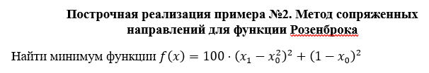 Построчная реализация примера №2. Метод сопряженных направлений для функции Розенброка 10