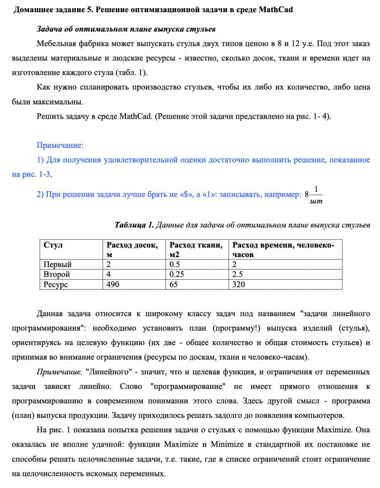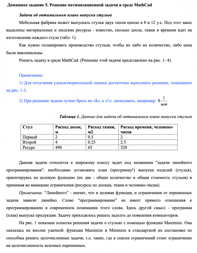 ДЗ 5: Решение оптимизационной задачи в среде MathCad