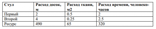 Задача об оптимальном плане выпуска стульев