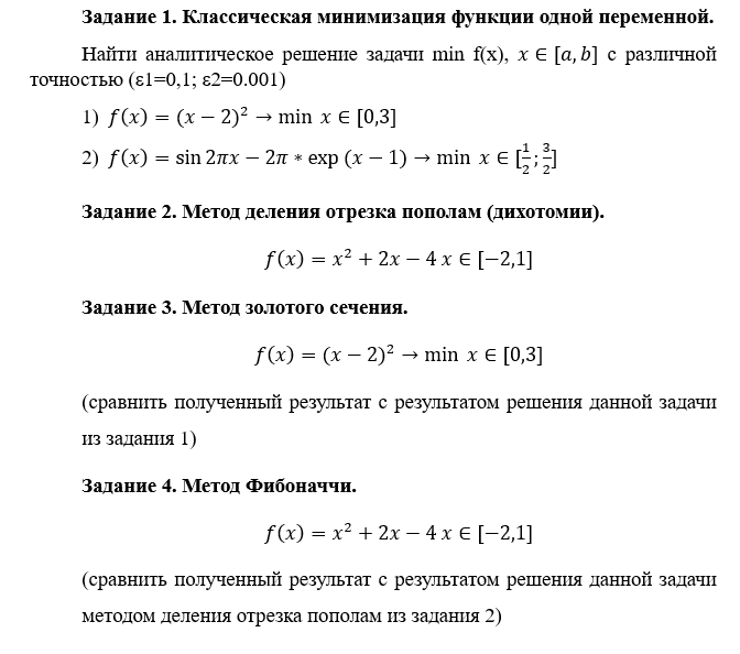 ДЗ КМ-2, 1, 2, 3, 4: КМ-2. Методы одномерного поиска. Методы одномерной оптимизации без использования информации о производной функции